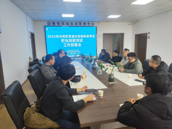 为顺利完成2026年中高职贯通分段制转录考试职业技能测试工作,2025年11月14日,实验实训中心组织召开2026年中高职贯通分段制转录考试职业技能测试工作部署会。会议由实验实训中心主任汪震主持,各学院分管考试工作的领导、负责老师及实验实训中心相关老师参加。